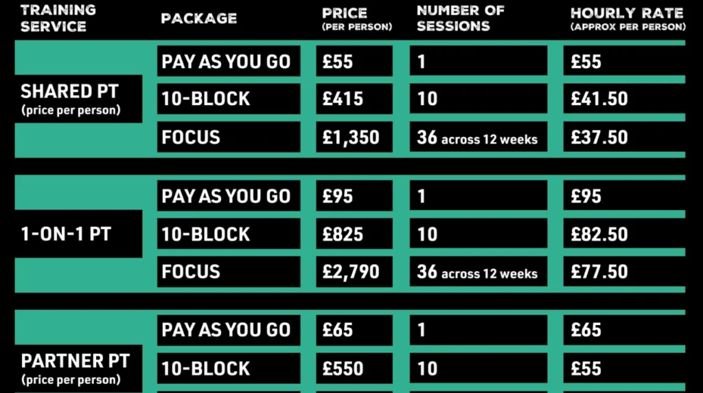 Personal training in North London typically ranges from £40-£80 per session, varying by experience and location. Introductory packages of 10-12 sessions offer discounts, ideal for commitment testing. Monthly memberships around £200-£400 include unlimited access plus app support for value.​
