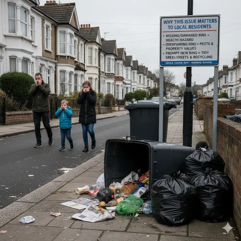 Missing or damaged bins disrupt daily life for North London households. Without proper waste collection, rubbish builds up, attracting pests and creating health hazards in busy areas like Enfield’s suburbs or Camden’s terraces.